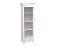 Стеллаж имеет три полки и выдвижной ящик на направляющих.