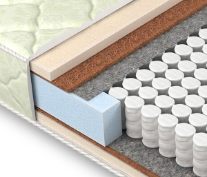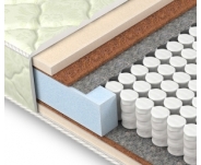 Основа матраса — блок независимых пружин с комфортными слоями высокоэластичного пенополиуретана и прослойкой косовой койры, придающего матрасу дополнительную жесткость и упругость.
